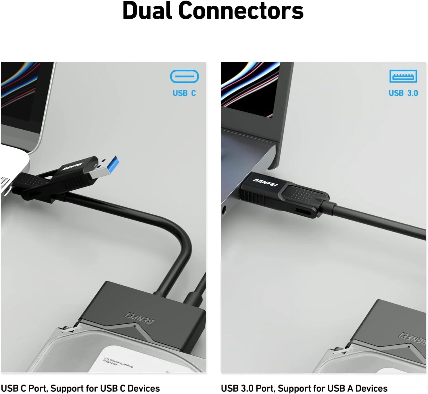Add drive space to your laptop by connecting to a SATA 2.5 SSD or 3.5 HDD using this SATA to USB cable. You can connect to an external drive to: add storage, perform backups, create disk images, implement data recoveries, and transfer content to your laptop.