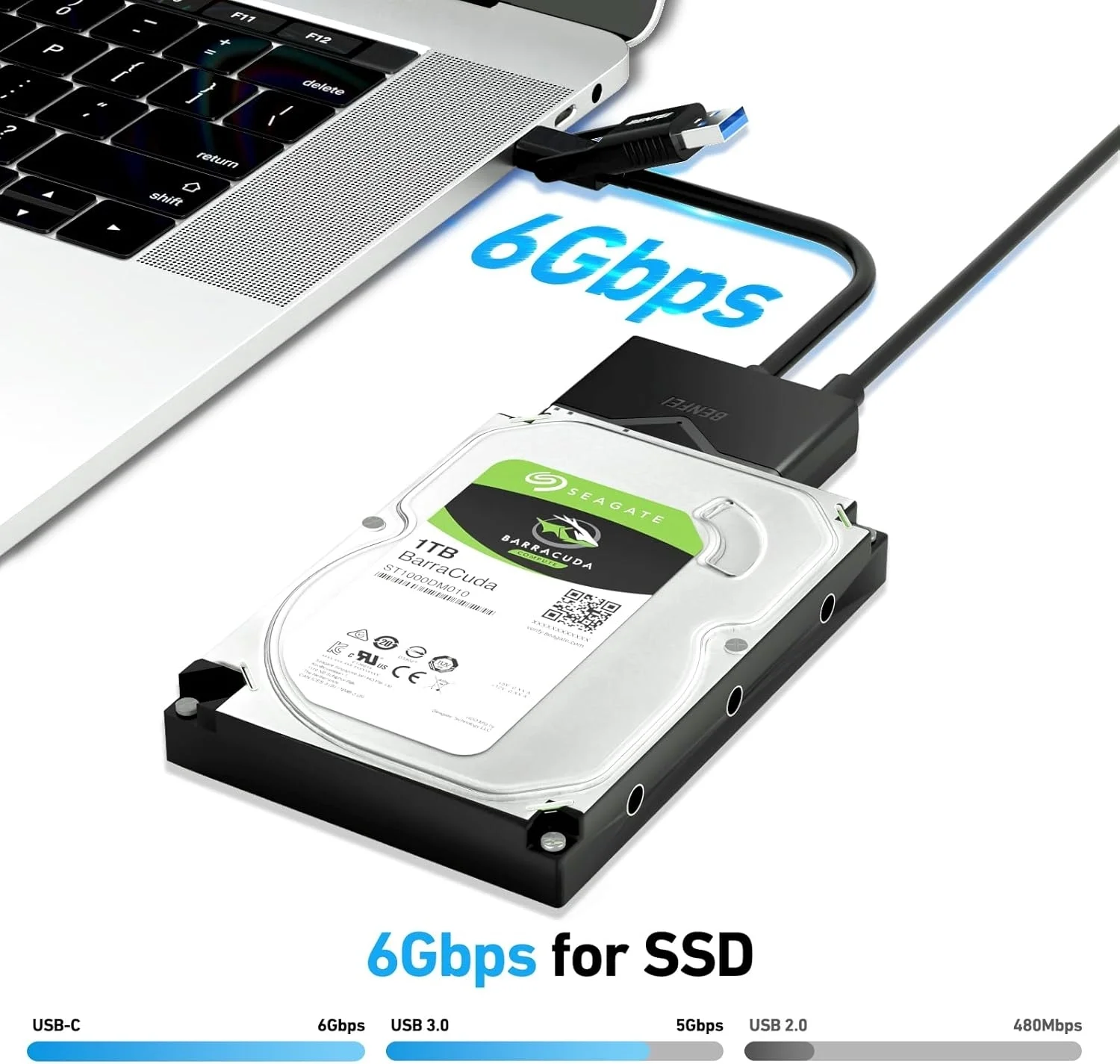 Data transfer rates of up to 6Gbps only for SSD. USB 3.0 version, supports data transfer speeds up to 5 Gbps, Backward compatible with USB 2.0 / 1.1. (Note: actual rate will depend on the capability of your device.)