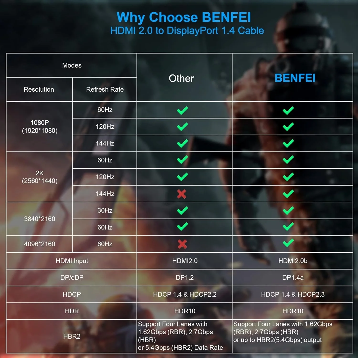 Braided nylon cable for extra durability and user-friendly non-slip design for easier plug and unplug. Premium aluminium alloy casing for better heat insulation. Latches-free Displayport connector can avoid damaging ports if forget to depress the button or causing loose connection when the latches fail.