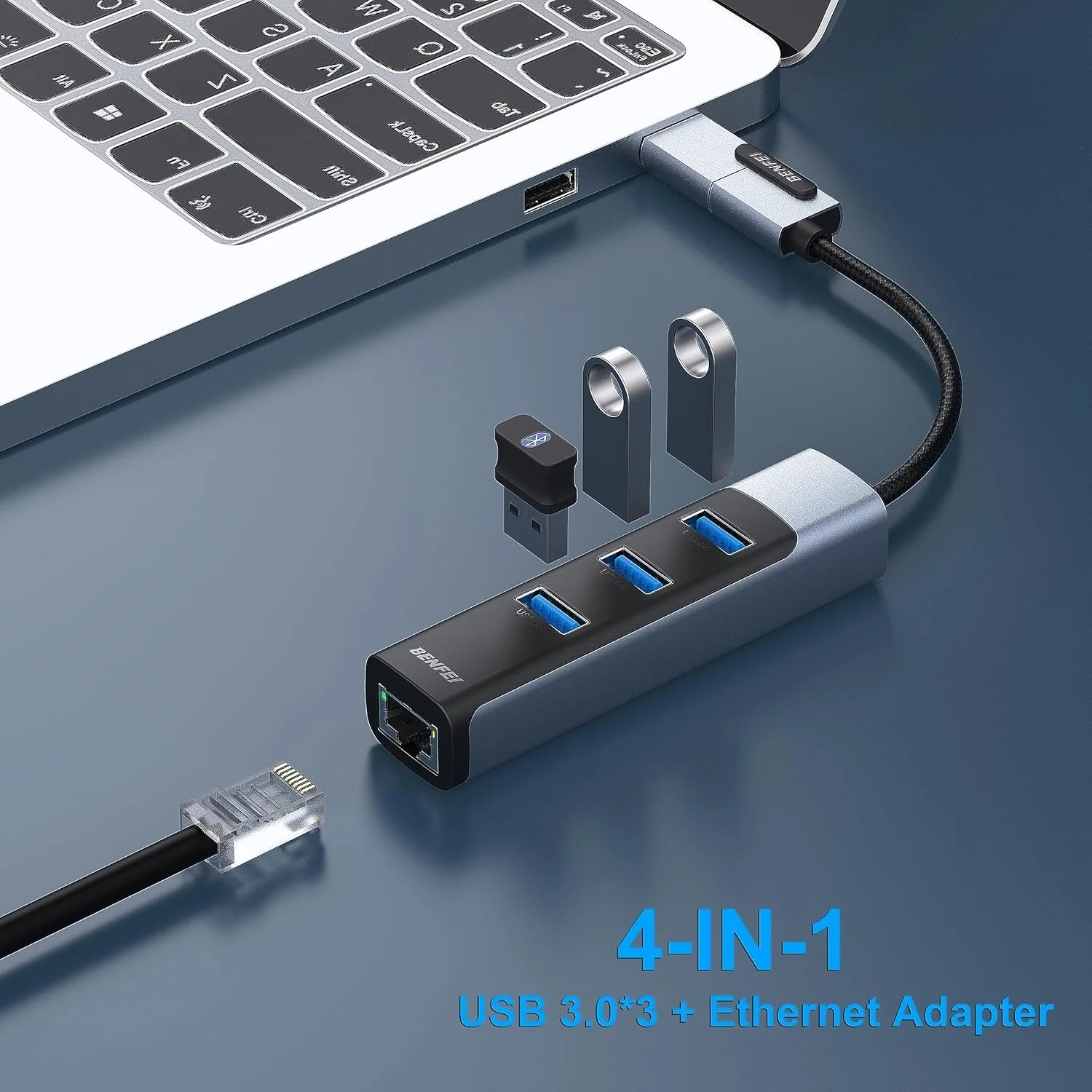 BENFEI USB Type-C/Type-A Network Adapter provides a plug-and-play gigabit ethernet connection between USB-C devices and wired network, expands your laptop with 3 additional USB 3.0 Port.