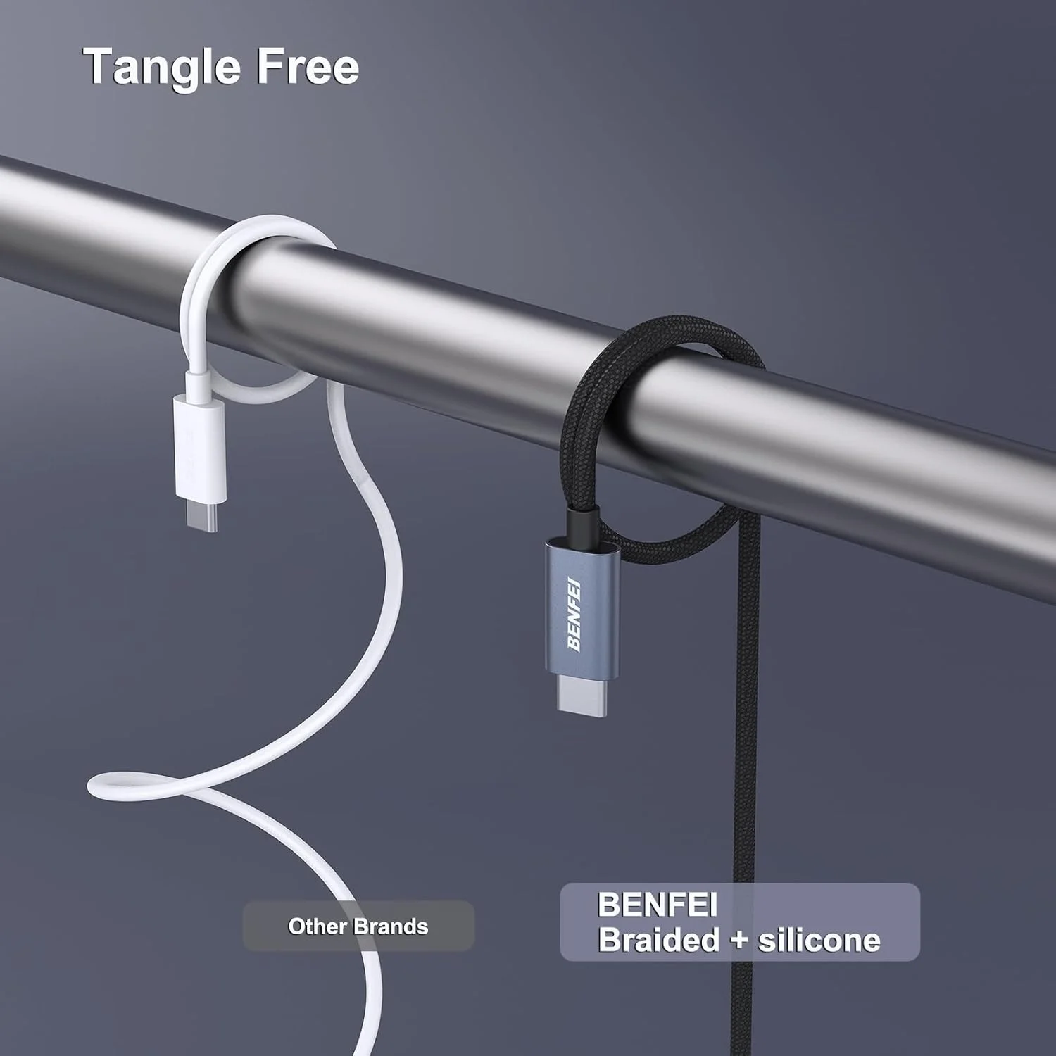 BENFEI adopts advanced silicone machine, build the softest and tangle free distinctive BENFEI cable. Great material and production provides a smooth and efficient charging process, comfortable usage.