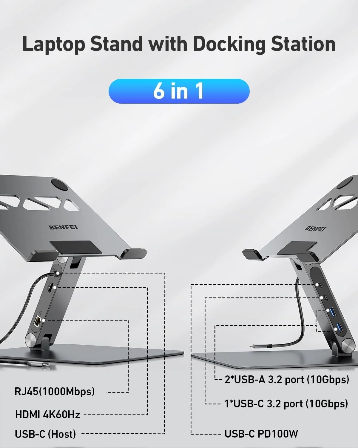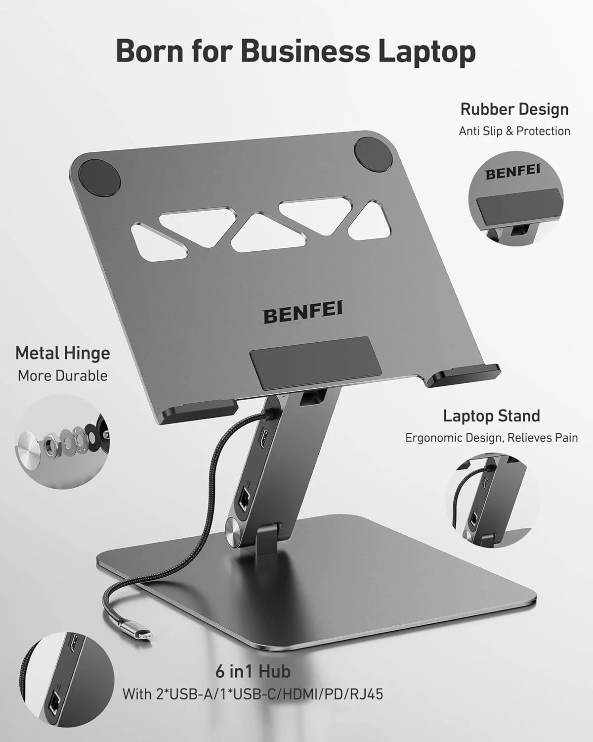 Crafted from aluminum alloy for maximum stability. Anti-skid silicone pads prevent slipping and protect your laptop. Backed by BENFEI's in-house aluminum processing and assembly expertise for premium quality and integrated docking functionality.