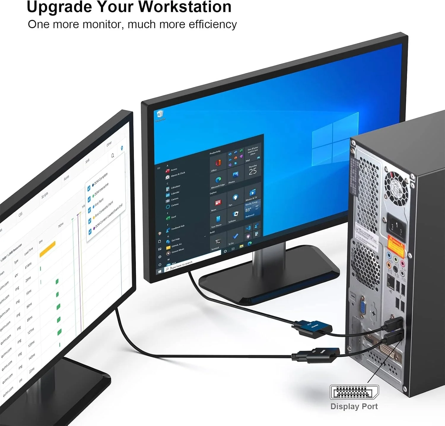 The compact-designed portable Benfei DisplayPort to VGA adapter connects a computer, desktop, laptop, or other devices with DisplayPort port to a monitor, projector, HDTV, or other devices with VGA port; Tuck this lightweight gadget into your bag or pocket to do a business presentation with your laptop and projector, or extend your desktop screen to a monitor or TV; A VGA cable is required.