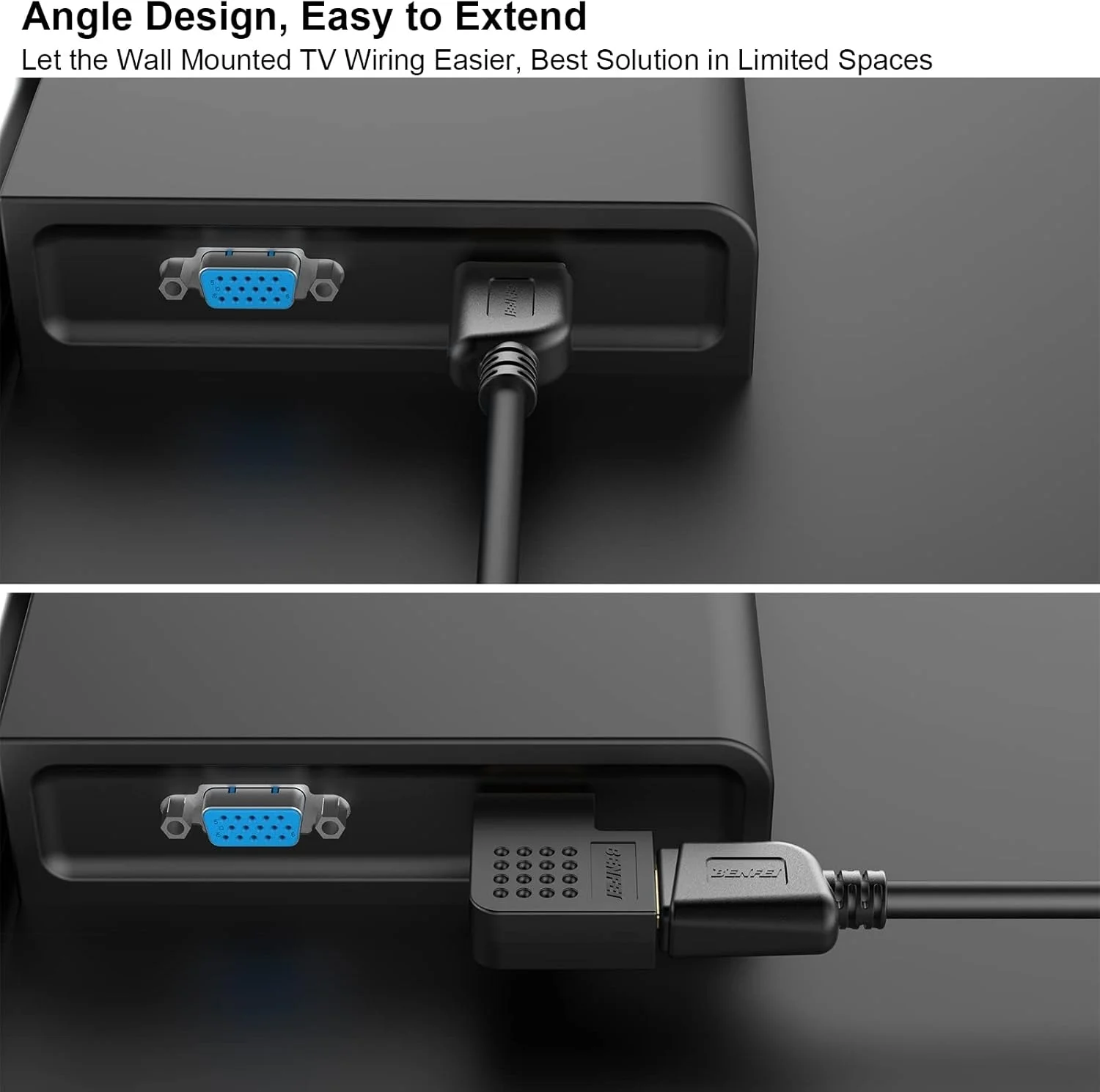 Providing the flexibility without risking of bending your HDMI cables excessively which may damage the cable or the ports on your expensive equipment, this adapter effectively protects devices been damaged by multiple plug & unplug, extend lifespan of devices and hdmi cable.