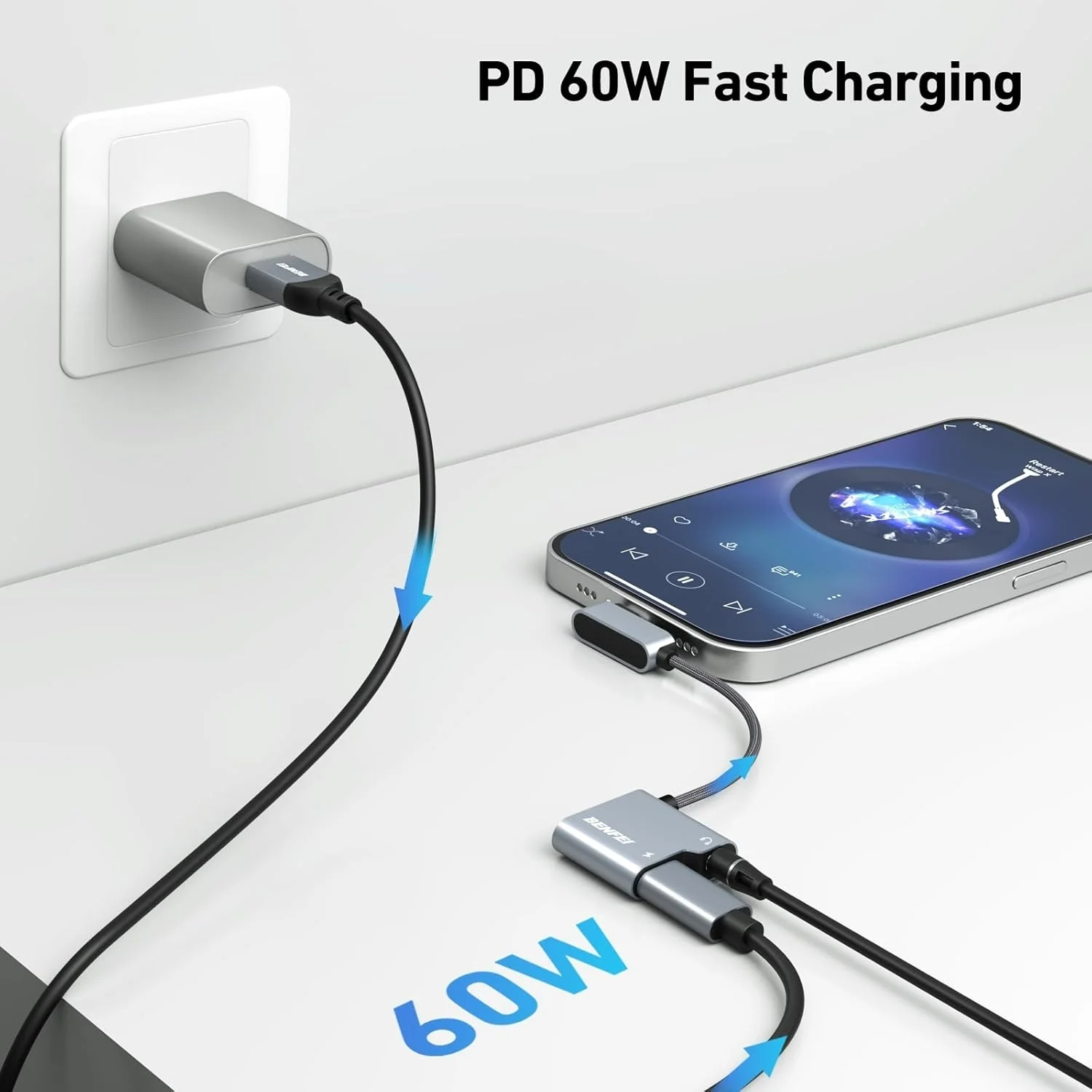 With 60W fast charging cord, you don't need worry any longer about phone battery. This compact usb-c to aux adapter enable you to listen to music and answer phone call with your headphone and support wire control function as well.