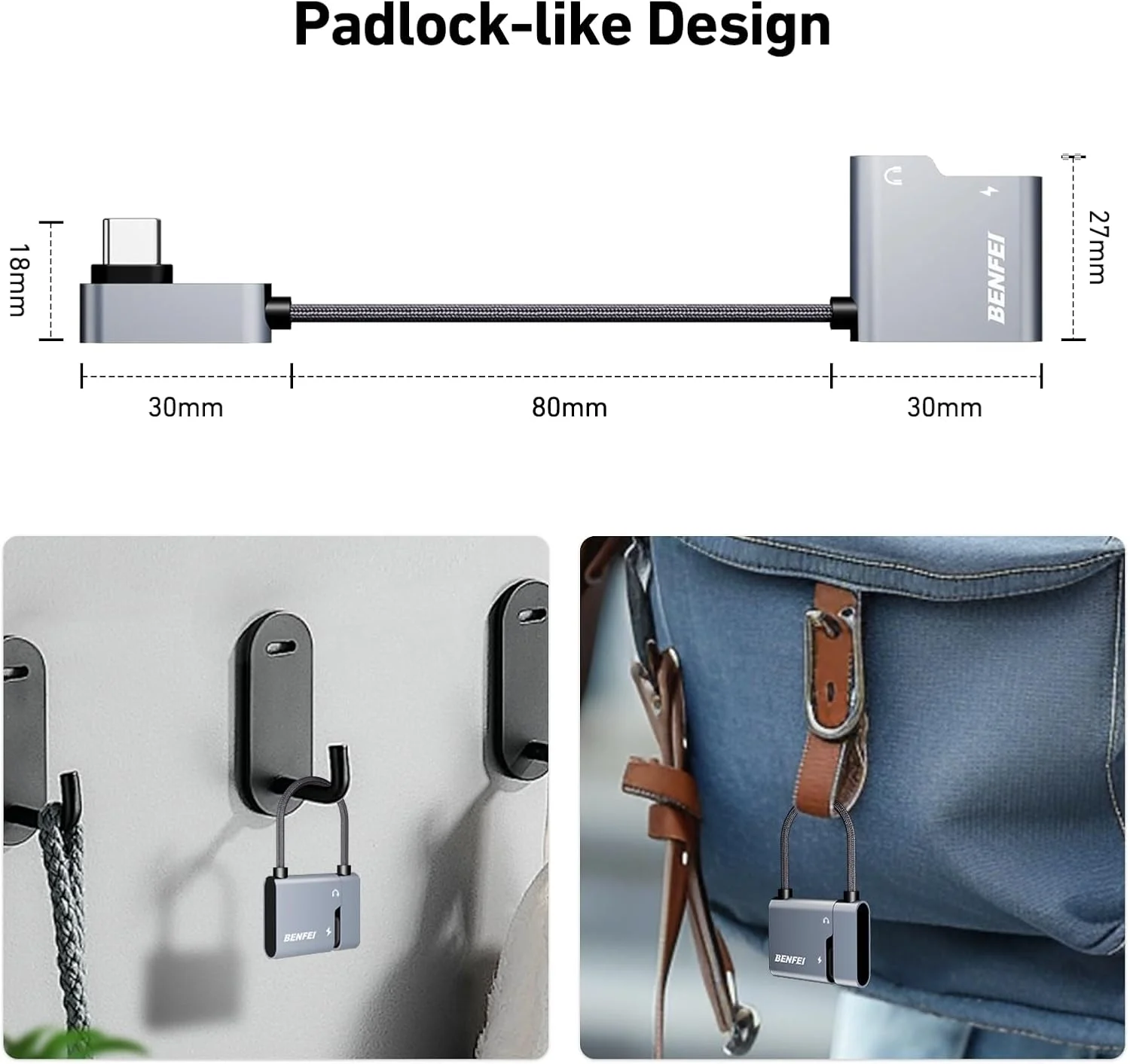With hidden cord design, the USB-C cord could be hidden, get rid of cable tangle issue in the bag.