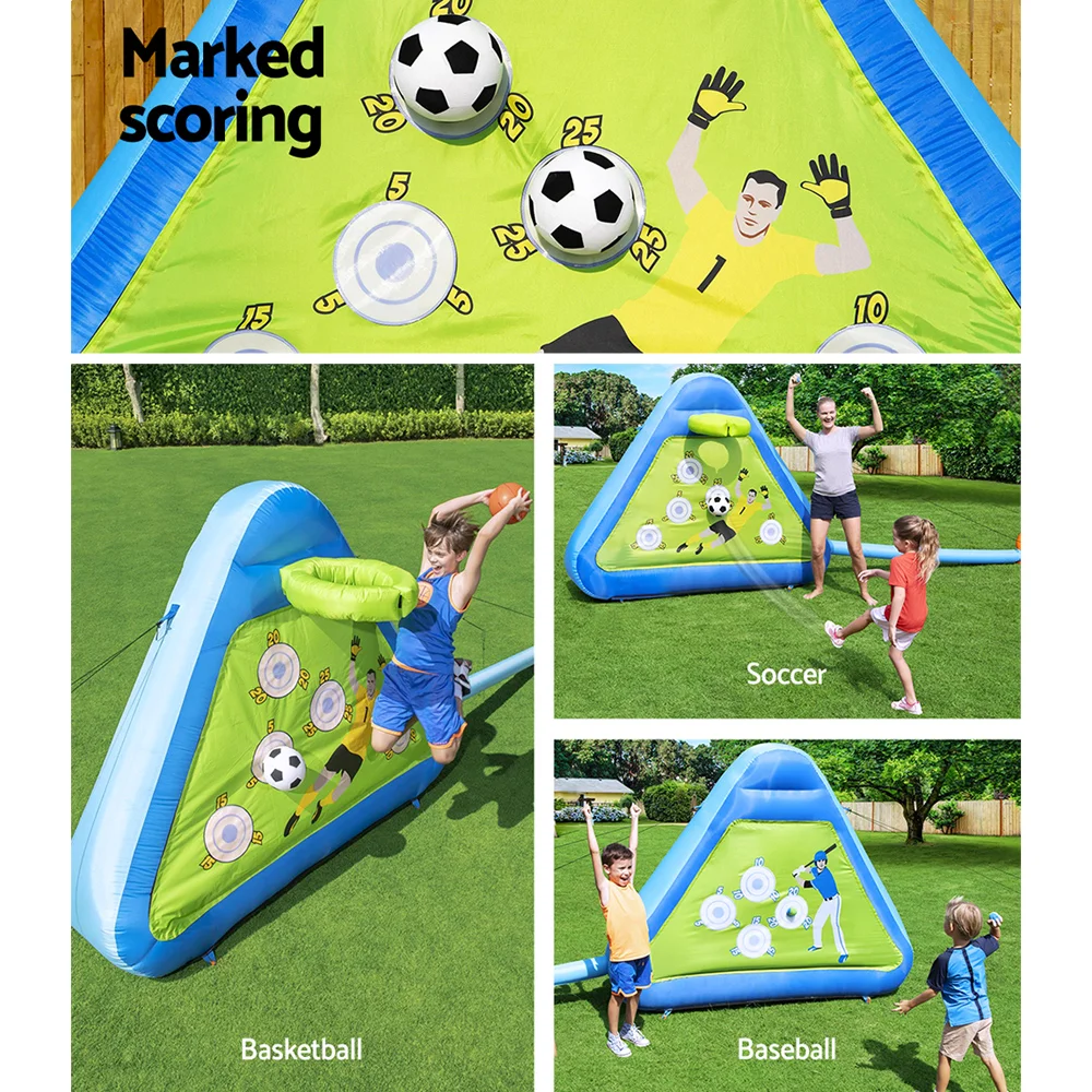 For the win! The Bestway® Triple Play Sports Board is certainly three times the fun. Basketball, baseball and soccer! With three ways to play, kids can work on perfecting their athletic skills along while improving their hand-eye coordination. Better still, the sports board comes with marked scoring for soccer games. Or dunk the basketball and practice three-pointers with friends. Not least, hit a ‘home run’ right in your own backyard. You can also create your own challenges and games by incorporating all three sports! Setting up the sports board is quick and easy with the included blower in less than two minutes. As for durability, the sport board is designed for robust play with its double-stitched polyester material construction.