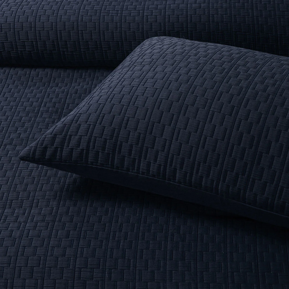 A simple yet classy jacquard design. Featuring a soft to touch easy care fabric in an elegant ink colour way. Add the matching european pillowcases and cushion to complete the look at an extra cost.