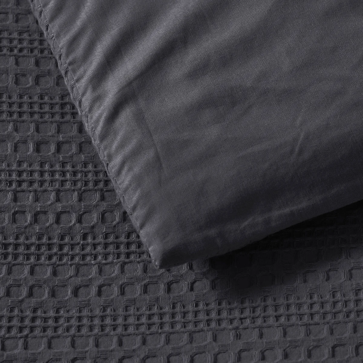 The Bianca Kahlani Charcoal Waffle Quilt Cover Set is made from a beautiful waffle fabric which features a horizontal jacquard design. Available in three on trend colours, Chocolate, Charcoal and sage. This set features a charcoal tone that's rich, warm, and perfect for layering. Whether you're decorating a master bedroom or a guest room, this quilt cover brings a simple elegance that suits just about any setting.