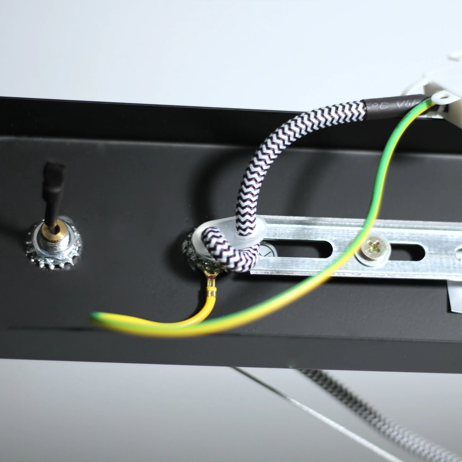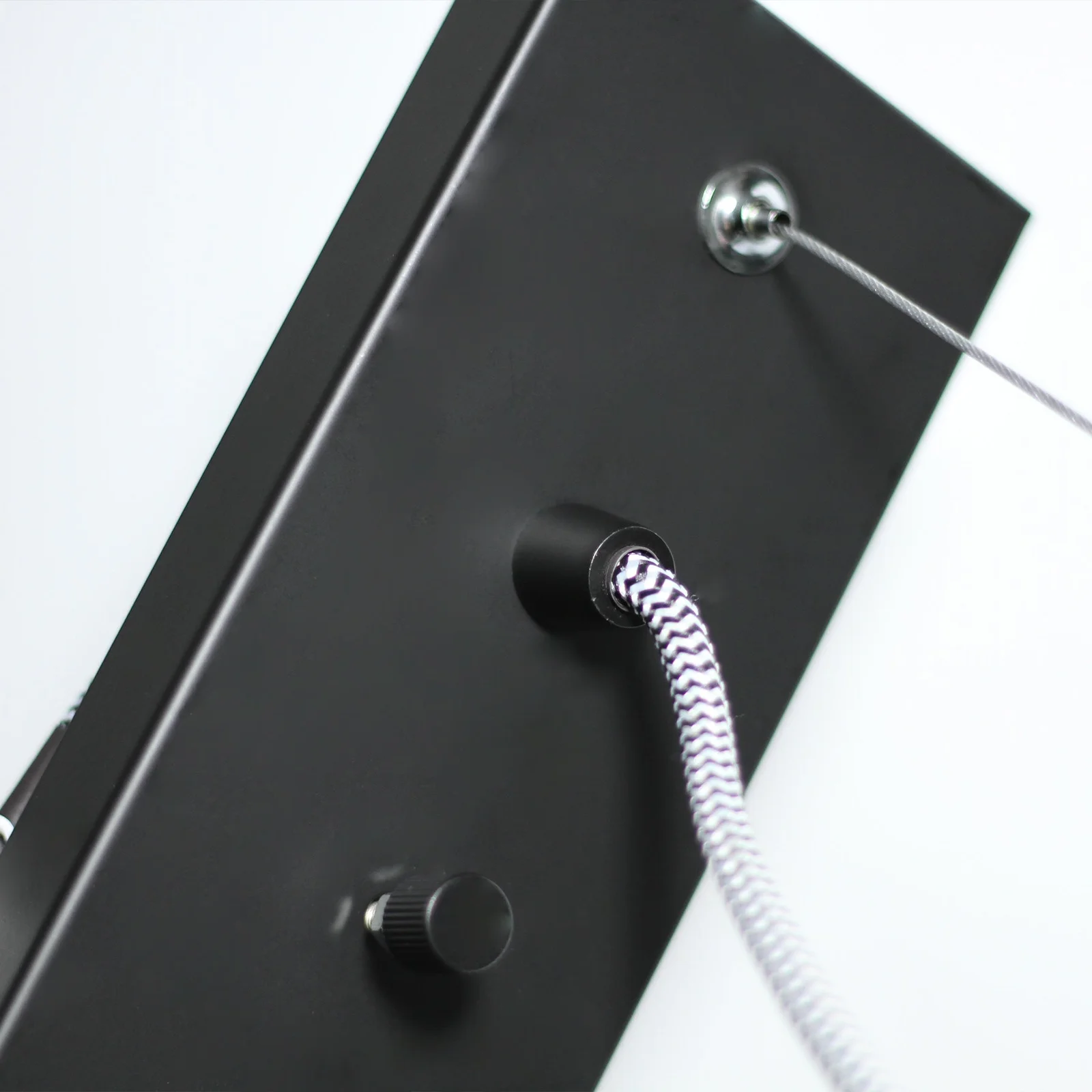 The four globe holders that drop from the lighting bar each have long grey braided cords that can be wrapped around the lighting bar to set heights individually. The heights can set to your preference, whether after a staggered look, or a short non-invasive drop, or a long, purposeful hang. The Bikkel Four Light Pendant comes in black and white and requires four E27 globes.