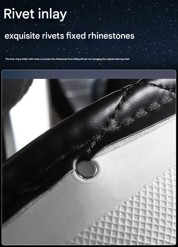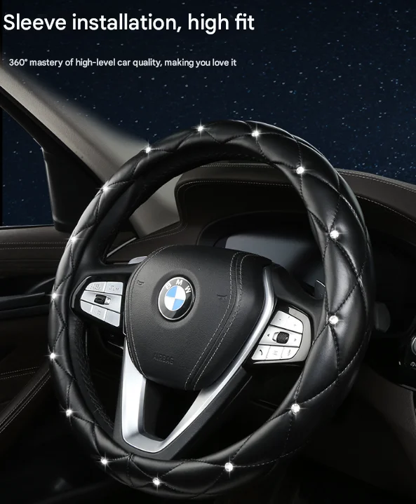 Elevate your car's interior from ordinary to extraordinary with this luxurious quilted steering wheel cover. Combining the timeless elegance of diamond-stitched leather with the dazzling sparkle of high-quality rhinestones, this cover provides a sophisticated look, a comfortable grip, and a touch of personal flair to your vehicle.