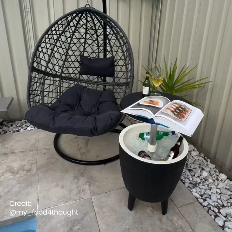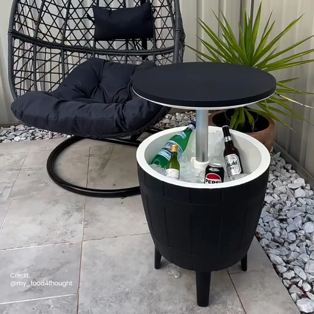The tabletop can be extended or retracted to serve as a coffee table. Underneath the tabletop is the cooler, which is cleverly designed for high space utilization. Whether it's chilled drinks, fruits or other food that needs to be refrigerated, it can be kept properly. When the tabletop is not needed, it can be easily stowed away to restore the compact form of the ice bucket, easy to carry and store.