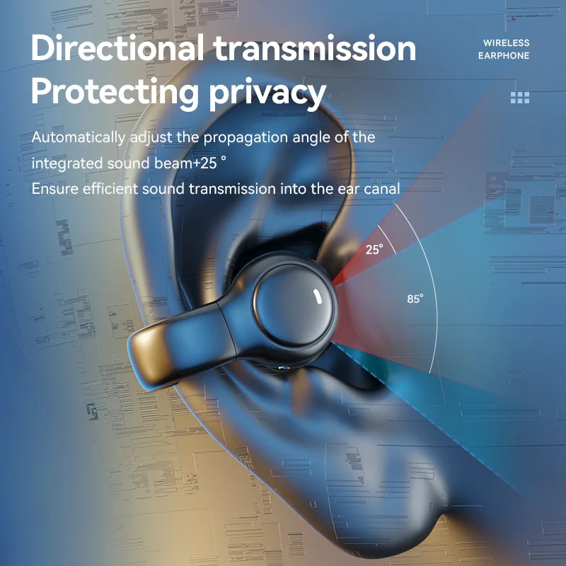 Introducing a revolutionary listening experience with our Open-Ear Ear-Clip Wireless Earbuds. Designed to rest gently on the outside of your ear, they deliver rich sound without plugging your ear canal. Enjoy your music, podcasts, and calls with complete comfort and stay aware of your surroundings, making them perfect for sports, commuting, and office use.