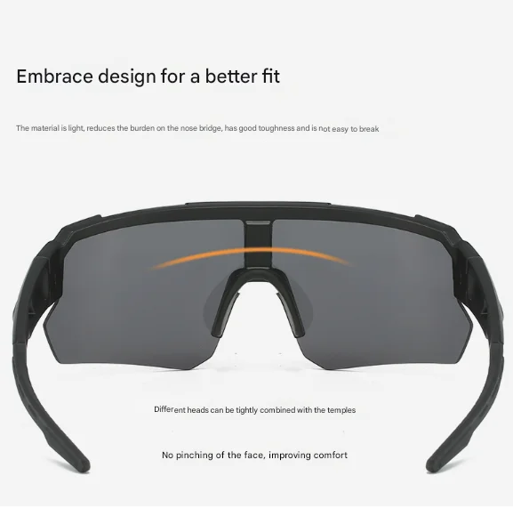 Designed for the dedicated cyclist and outdoor enthusiast, these high-performance sport sunglasses offer the perfect fusion of a lightweight frame, a wide field of vision, and a secure, comfortable fit. Whether you are on the road, on the trail, or running, these glasses are built to enhance your performance and protect your eyes without distraction.