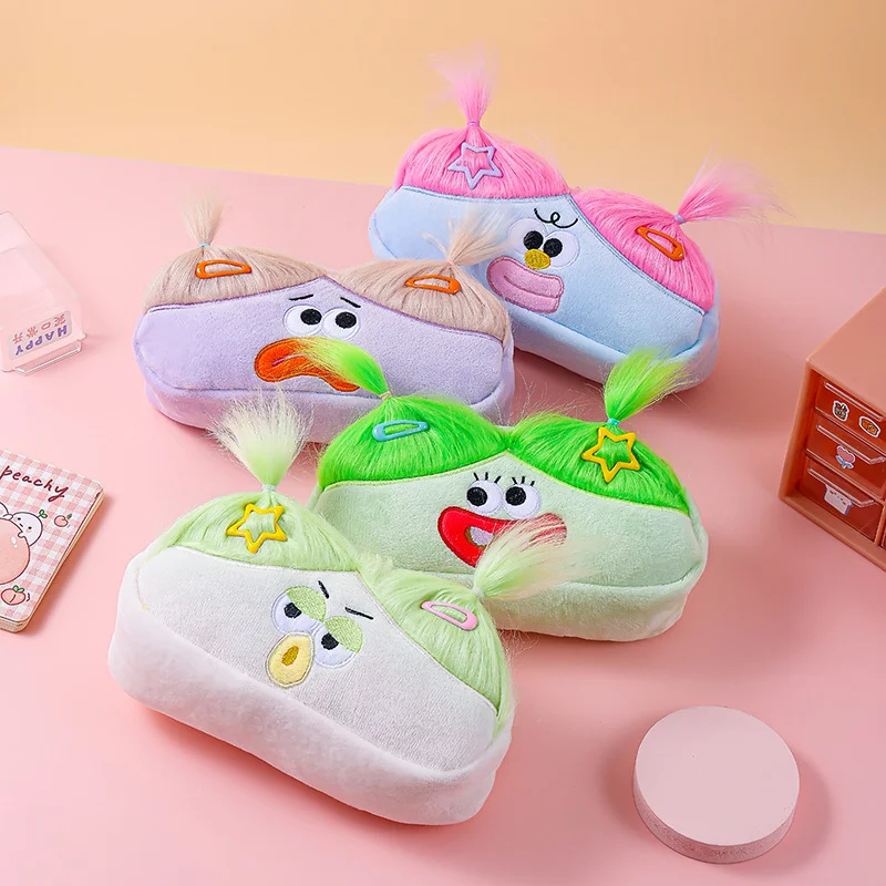 Make school or study time more fun with this irresistibly cute and quirky plush monster pencil case! With its soft, fluffy texture, funny embroidered face, and colourful pigtails you can style yourself, this isn't just a pencil case—it's a fun companion for any creative mind.