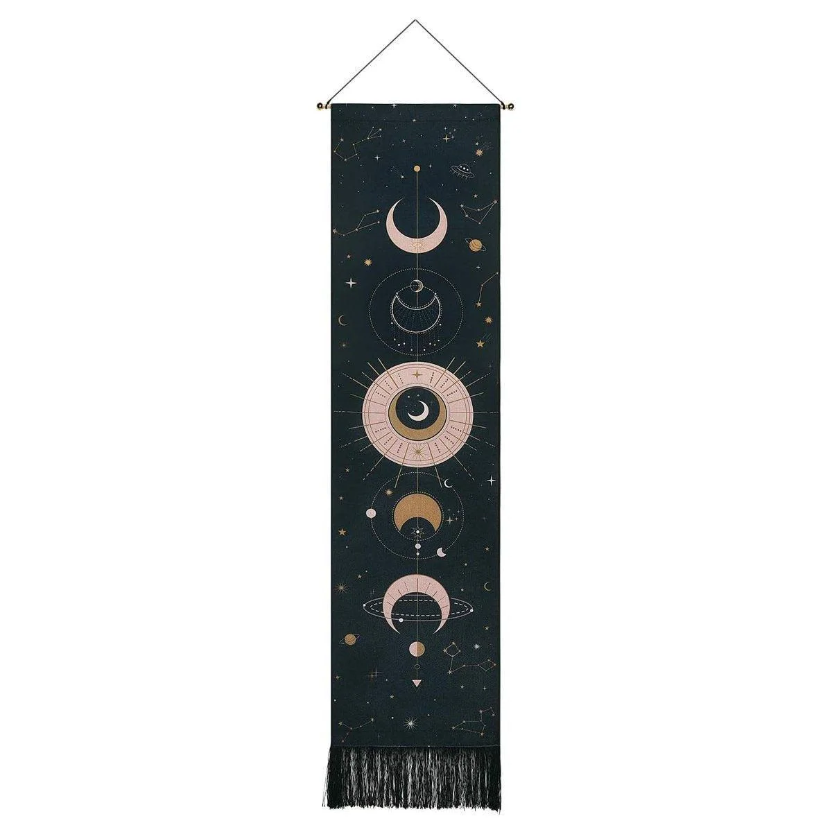 Bohemian Wall Hanging Tapestries Vintage Wall Decor Moon Phase Wall Art Decor - Flower-Black