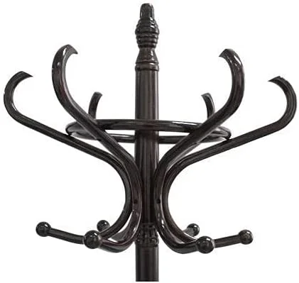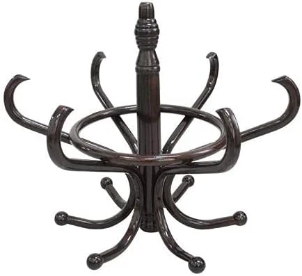 Brown Coat Rack with Stand Wooden Hat and 12 Hooks Hanger Walnut tree