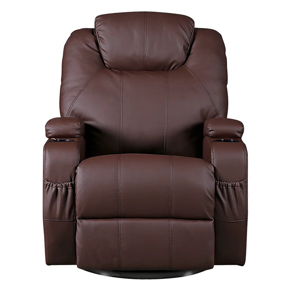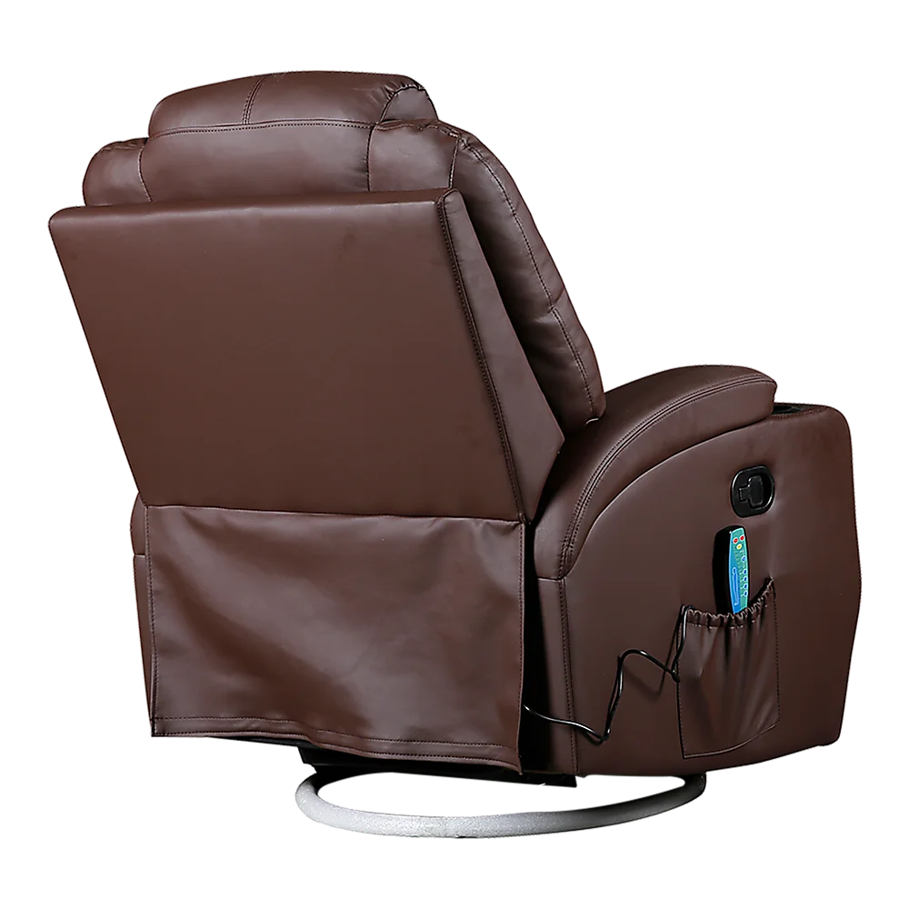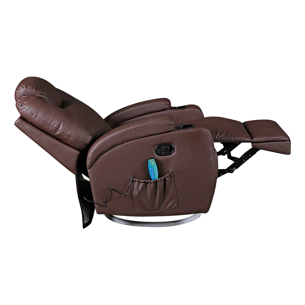 Featuring a 360 swivel base, wide armrests, and dual cup holders, this recliner offers convenience and relaxation in one. Whether it's placed in your living room, office, or entertainment area, its rich brown tone blends effortlessly with any décor.