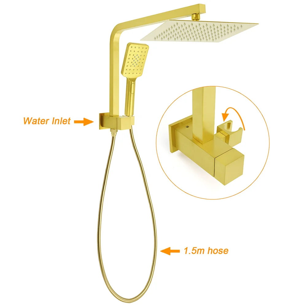 - Materials: Brass in rail, brass in shower holder, brass in diverter