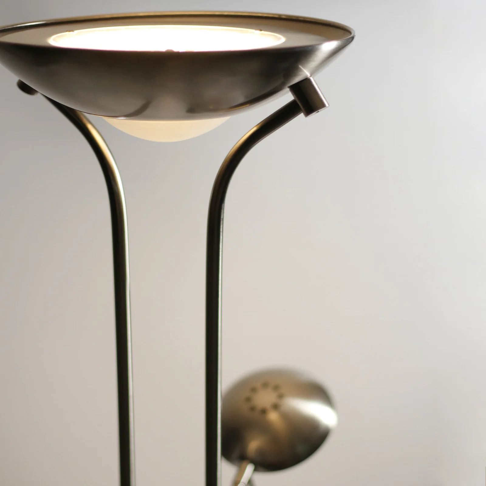 The Buckley Dimmable LED Mother Child floor lamp is a sophisticated light furnishing that would add elegance to any room it is placed. Its 180cm satin chrome stand and circular base make for a striking feature in any living, dining or entertaining space. And the bowl-shaped diffuser is the touch of class needed to complete this beautiful lamp.