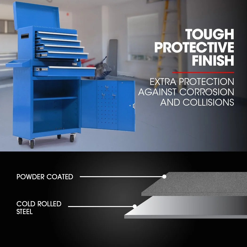 This combination split tool cabinet offers an instant equipment and parts storage solution to make your workspace more efficient and easier to comprehend. It’s the essential addition to any garage or workshop. Order your very own Bullet 5 Drawer Tool Box Cabinet today!