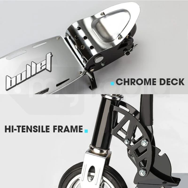 Turn heads and hit the pavement in style with the Bullet Electric Scooter the perfect blend of sleek design, lightweight build, and smooth performance. Weighing just 10kg, its easy to fold, carry, and store, making it the ultimate portable ride for everyday adventures.