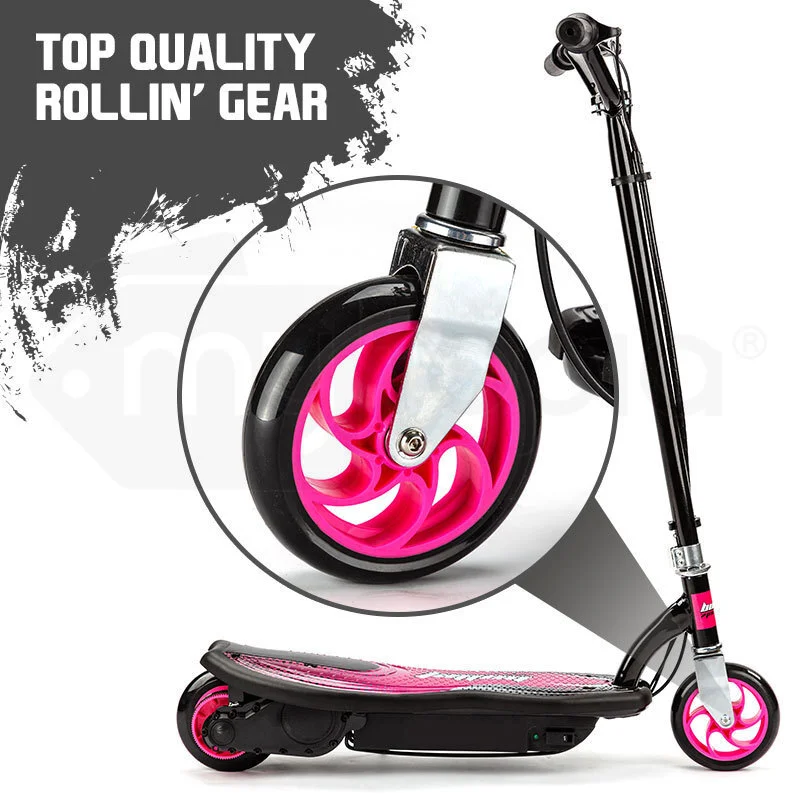 The Bullet ZPS electric scooter boasts striking pink decals on the FlowGripTM deck which offers plenty of control for safe riding. Thanks to the 140 watt motor it can zip along at speeds of up to 15km/h, which is fast enough for maximum fun, without causing chaos in the local park.