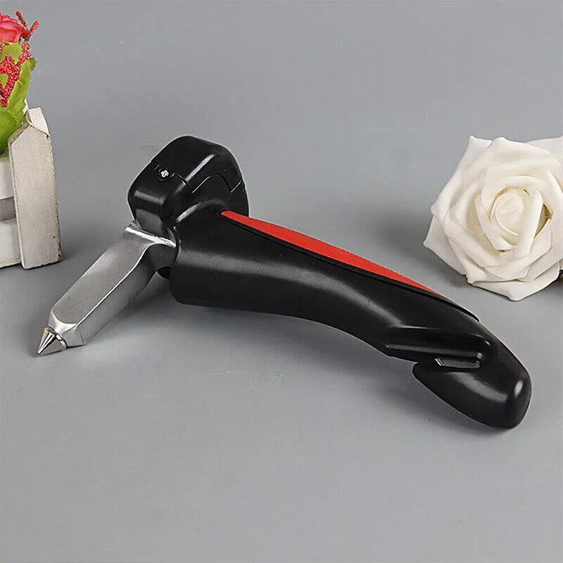 Four functions - car handle, LED flashlight, seat belt cutter, window breaker