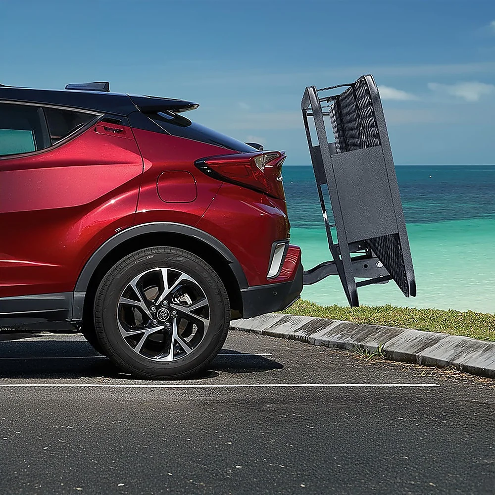 Not only does it make travel more comfortable, but it's easy to fold up when not in use, thanks to its foldable angled shank. It's a great solution for businesses, too, that need a little extra cargo capacity but don't need an entire trailer. Its mesh base allows you to clean it easily. Just hose it down, and you're good to go. Order yours today and never have cramped seating in your car again.