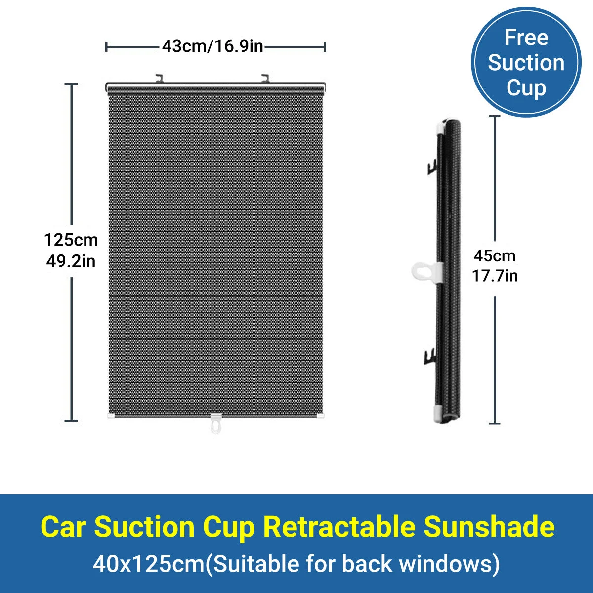 This retractable car window sunshade offers quick and effective protection against glare, UV rays, and heat.With a user-friendly roll-up design and included suction cups, it installs easily on side or rear windows.Available in two sizes, it provides wide coverage while maintaining driver visibility.Suitable for cars, offices, kitchens, or balconies.