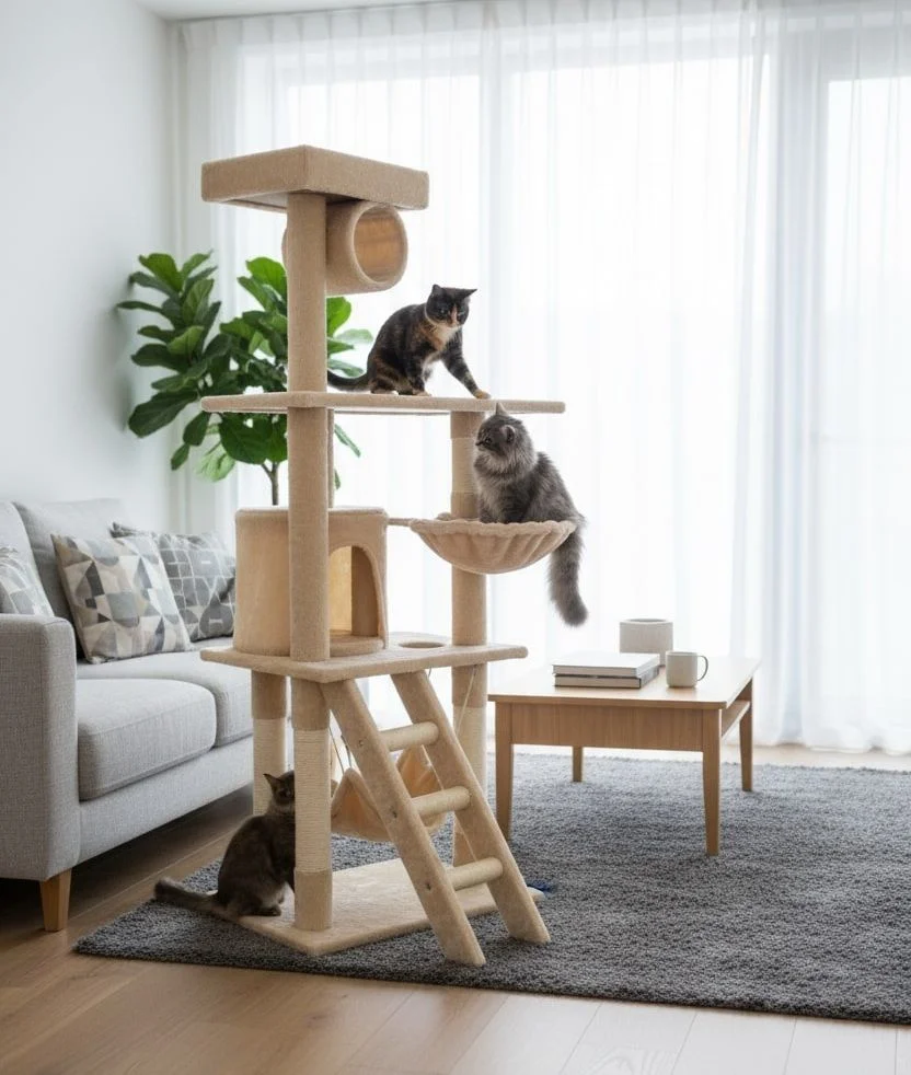 STURDY & STABLE CONSTRUCTION: Built with thick boards, reinforced posts, and a wide base, this cat tower provides excellent stability and safety during climbing and jumping, offering reliable support for daily use by kittens and adult cats.