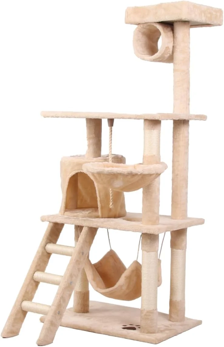 CARLA HOME 141cm Cat Tree Tower for Indoor Cats with Plush Perch, Ladder, Sisal Scratching Posts, Hammock & Condo for Kittens & Adult Cats (Beige)
