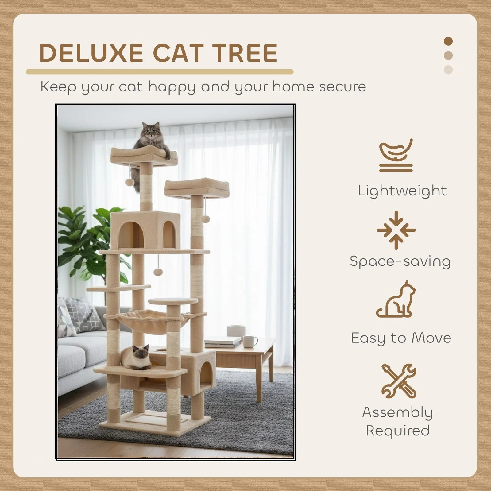 CARLA HOME 180cm Cat Tree Tower for Indoor Cats with Plush Perches, Dual Condos, Natural Sisal Scratching Posts & Ramps for Kittens & Adult Cats (Beige)