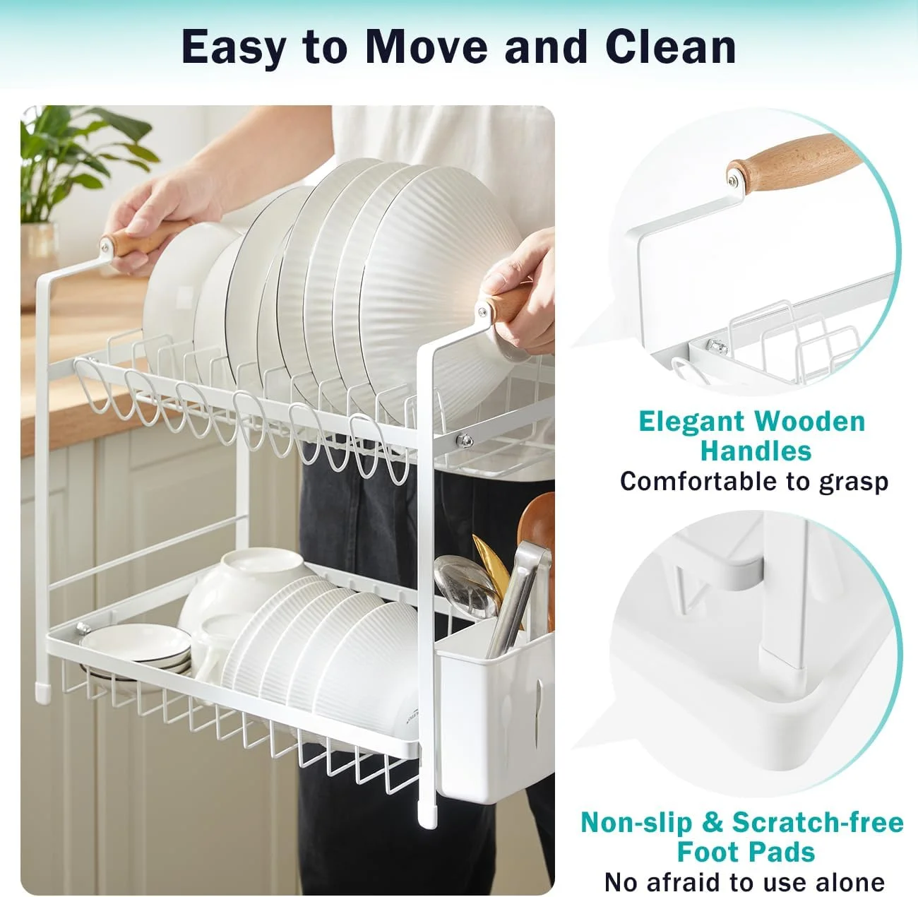• LARGE 2-TIER DESIGN FOR MAXIMUM STORAGE: This spacious dish drying rack offers vertical organization with upper and lower tiers to hold plates, bowls, mugs, and more — ideal for families or anyone needing extra drying space.