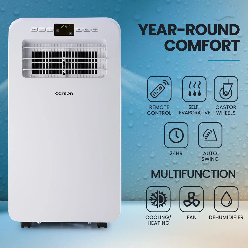 Equipped with reverse cycle technology, you can conveniently use the Carson PA300 Portable AC to keep your home cool during summer and cosy warm during winter. With an impressive capacity of 2.9kW, it's ideal for regulating the climate of rooms up of to 22 square metres.