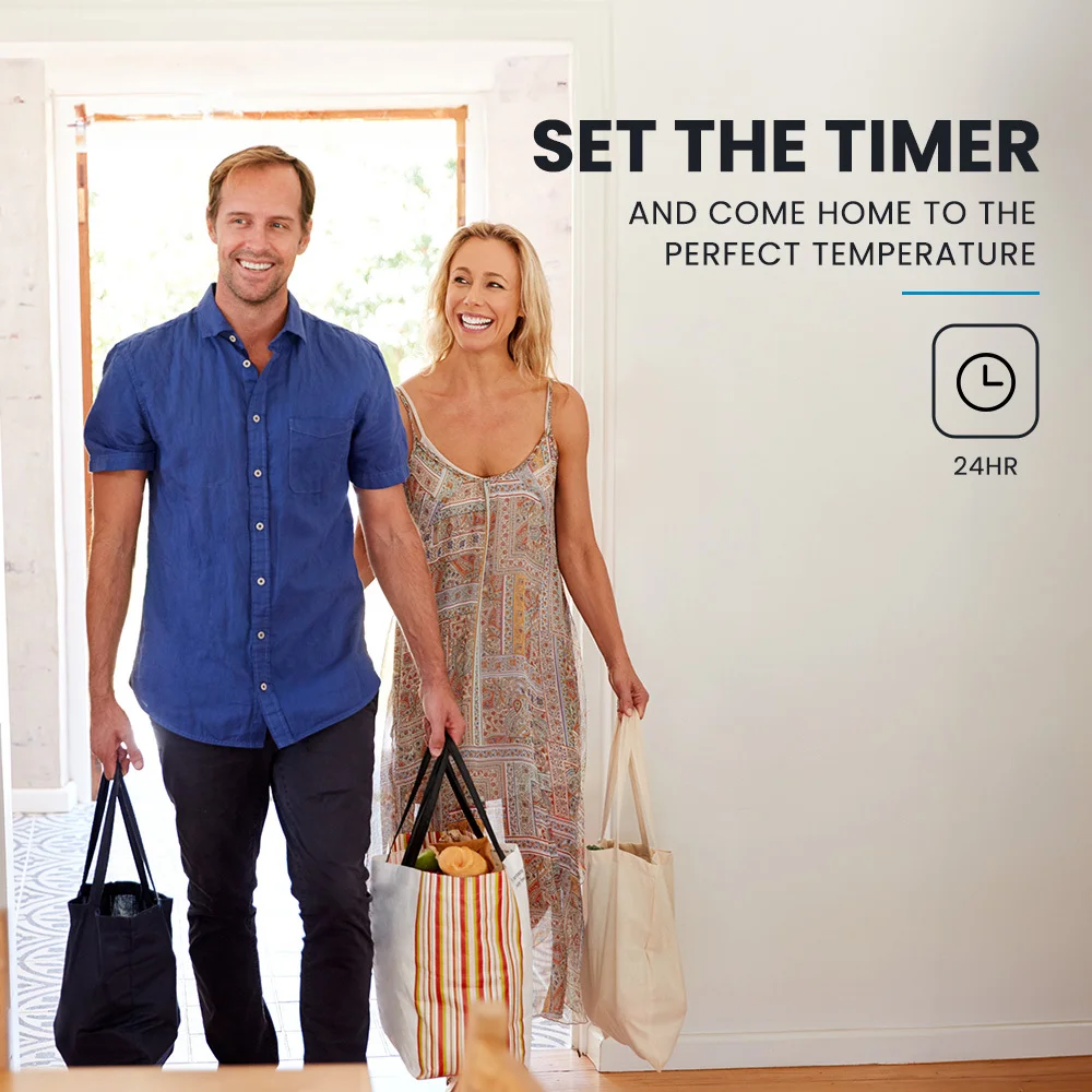Set the timer on the user-friendly LCD display up to 24 hours in advance, ensuring you come home to the perfect temperature every time.
