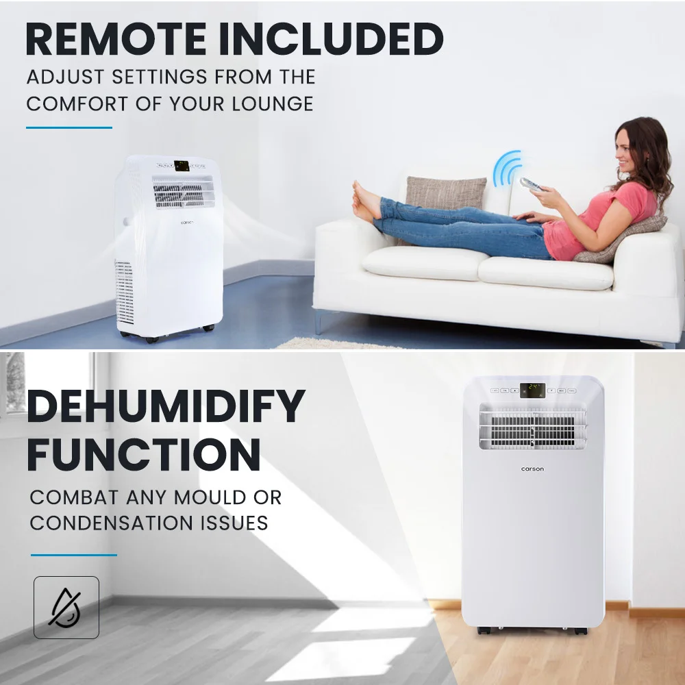 Keep your home comfortable all year-round with the Carson PA300 Portable Air Conditioner and Heater. Just sit back, relax, and use the remote control to adjust the temperature from the comfort of your lounge.
