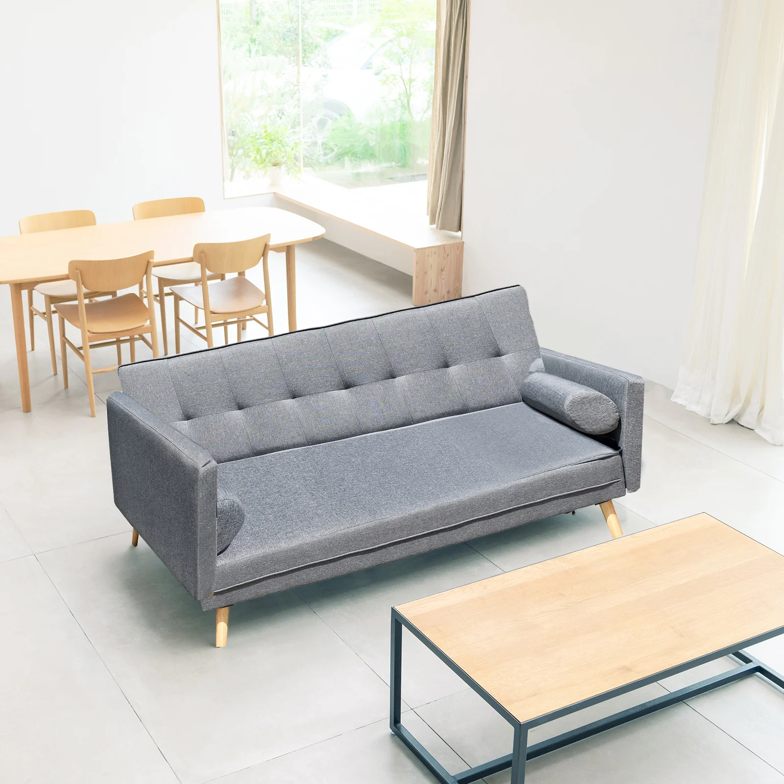 The sofa bed is upholstered with premium faux linen and is founded on chic wooden legs. With its classic charcoal colour palette and Scandinavian vibe, it's a fantastic living room centrepiece that will never go out of style!
