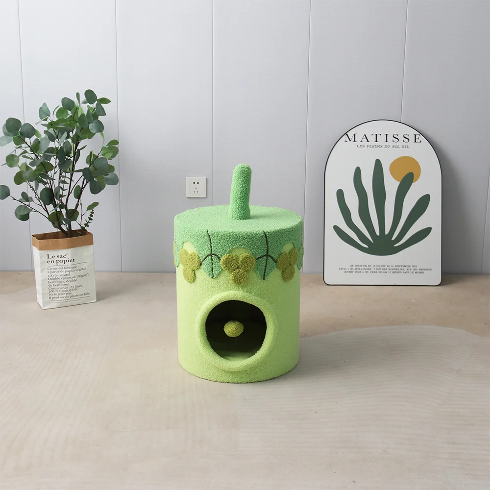 The cat house comes in hues of green, adding a touch of nature to your home. The soft plush material creates a cozy and inviting environment for your cat to curl up and rest. With its sturdy and stable construction, this cat house guarantees durability and peace of mind. Additionally, the top of the cat house offers additional lounging space, allowing your cat to perch and observe their surroundings with a sense of regality.