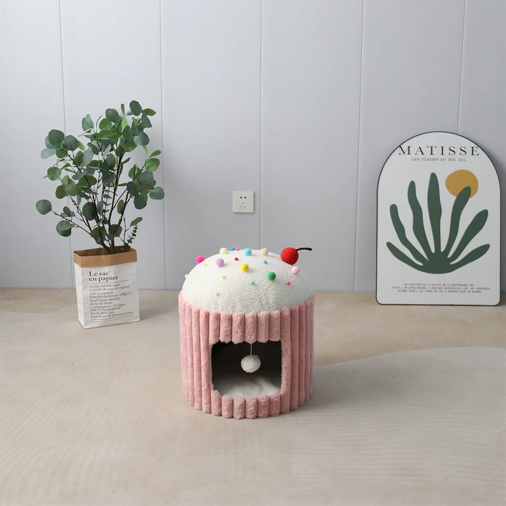 Let them bat and play with the hanging pink plush ball, providing endless entertainment and playtime joy. Suitable for cats of all ages, this cat house is the purrfect blend of style and coziness!