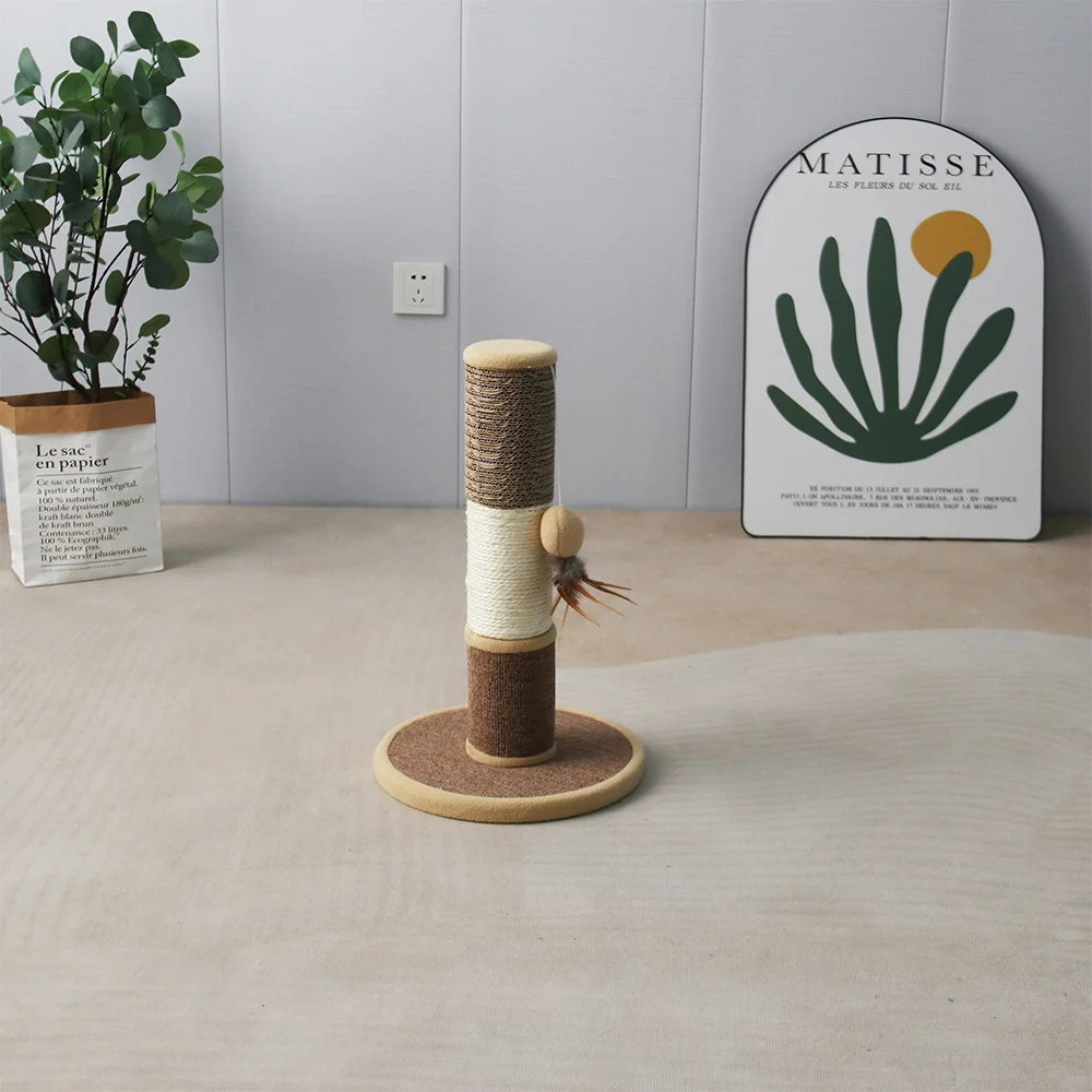Get ready to witness the most epic scratching spectacle with the CATIO Sisal Cat Scratching Post. It's a scratching extravaganza that will leave your cat purring with delight. This quirky post boasts not one, not two, but three mind-blowing textures that will make your cat's claws tingle with anticipation. From the corrugated paper at the top, perfect for those intense scratching sessions, to the rugged sisal hemp rope in the middle, designed to withstand even the most vigorous scratches, and the carpeted base below, for a gentle scratch they might prefer! And the fun doesn't stop there! The hanging cat toy is like the cherry on top, adding an extra dose of excitement that will make your cat go wild with swats and leaps.