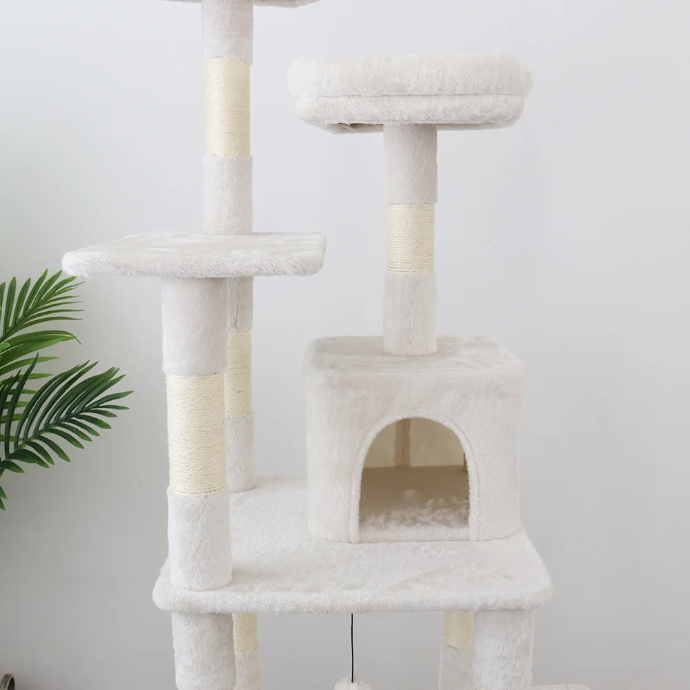 This cat tree has all your kittys needs covered by providing cozy spots to relax in, hideouts to retreat to at their leisure, scratching and perching opportunities, and playtime fun.