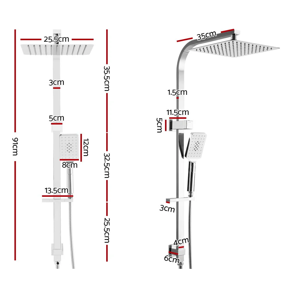 Overhead shower head size: 25.5cm x 25.5cm