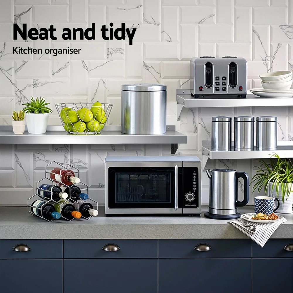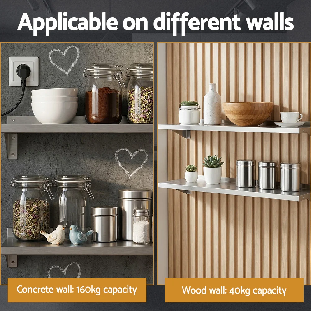 Need to add more shelf space? Display space? Lots of wall space? Perfect. Our Wall Shelf is just the thing you need to create more space without occupying more floor space. Made of durable and thick 430 stainless steel, the wall shelf is rust-proof and easy to clean which makes it perfect for use in the kitchen. It is also heavy-duty with a high weight capacity and wide enough to provide ample storage or display space for a variety of items, not just kitchen essentials. Mounting to the wall is simple with the included manual and two support brackets are provided. Install in the kitchen or any other room that needs some sleek extra shelving.