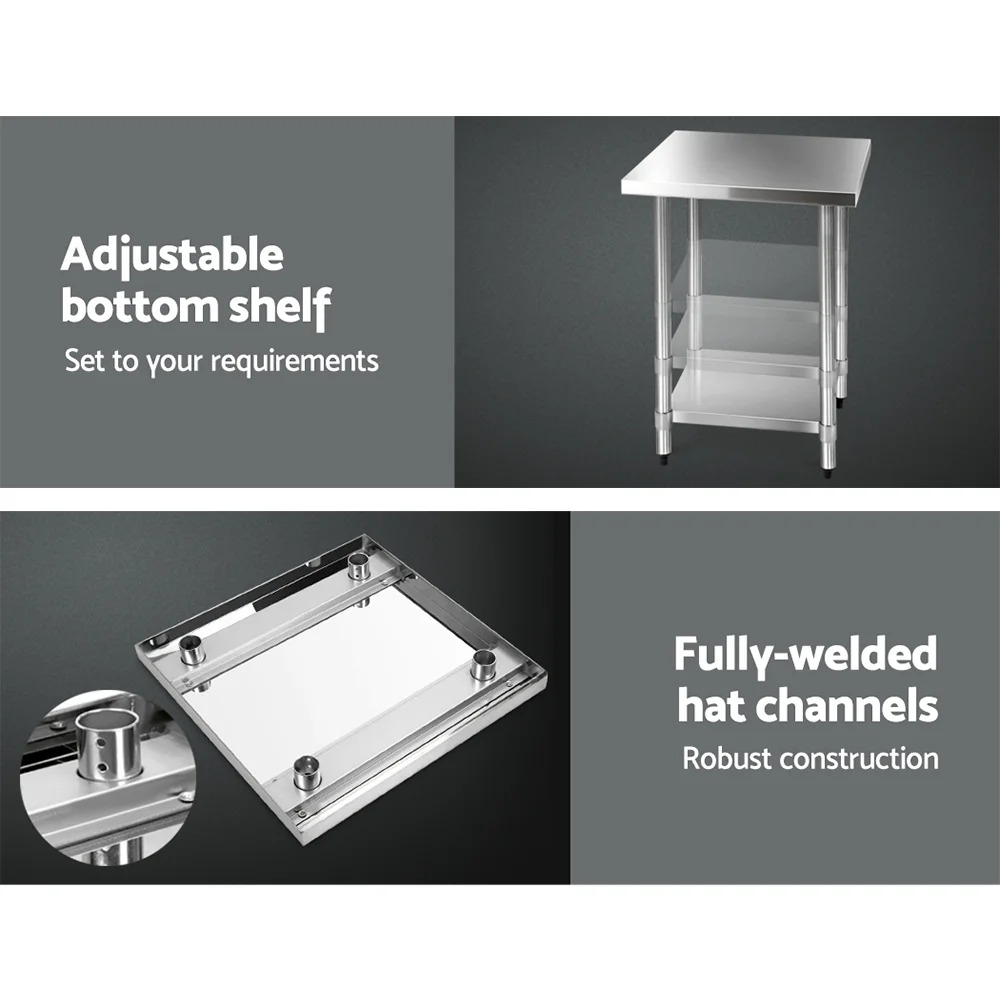 Cefito 1219x610mm Stainless Steel Kitchen Bench with Wheels 304