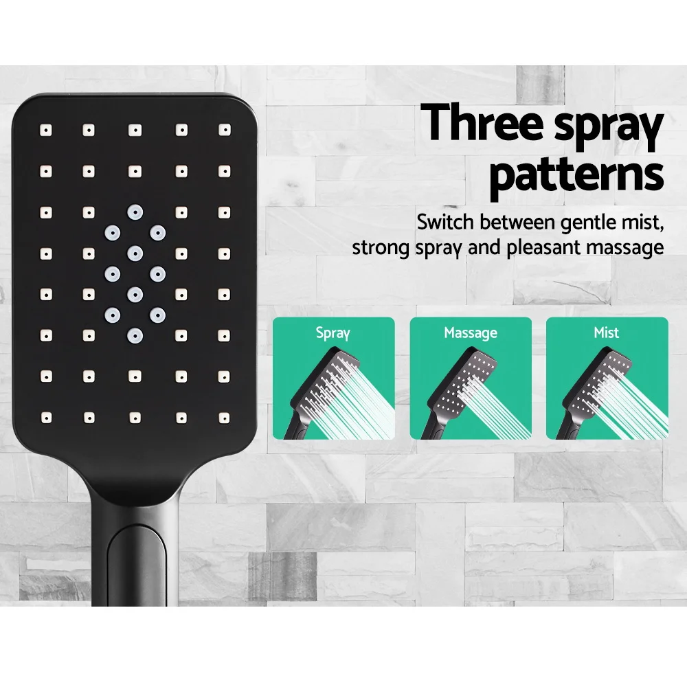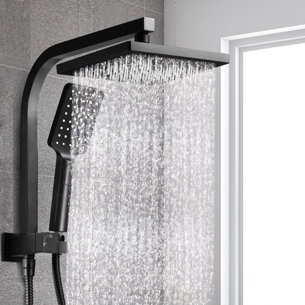 You will get a top quality fixed 8" shower head that simulates rainfall for a very soothing shower plus a handheld shower head with up to three spray patterns to let you target the water at specific areas with varying intensities. Made with a solid brass body and finished in matte black, the durable fixed shower head also features a built-in brass diverter to prevent leakage. The handheld shower head has a 1.5m stainless steel water hose to allow flexible use.