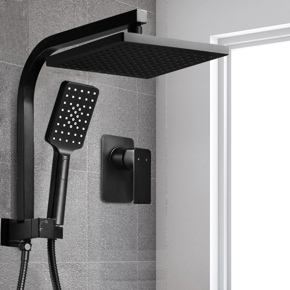 You will get a top quality fixed 8" shower head that simulates rainfall for a very soothing shower plus a handheld shower head with up to three spray patterns to let you target the water at specific areas with varying intensities. Made with a solid brass body and finished in matte black, the durable fixed shower head also features a built-in brass diverter to prevent leakage. The handheld shower head has a 1.5m stainless steel water hose to allow flexible use.And for a perfect mix of the right water temperature, our shower mixer makes it easy for you. The solid brass construction make this mixer absolutely smooth and durable with a drip-free 35mm ceramic cartridge to prevent leakages. The brilliant matte black finish actually comprises a multi-layer finishing process with zinc, nickel and brass plating. The mixer also has hot and cold markings for hassle-free use.