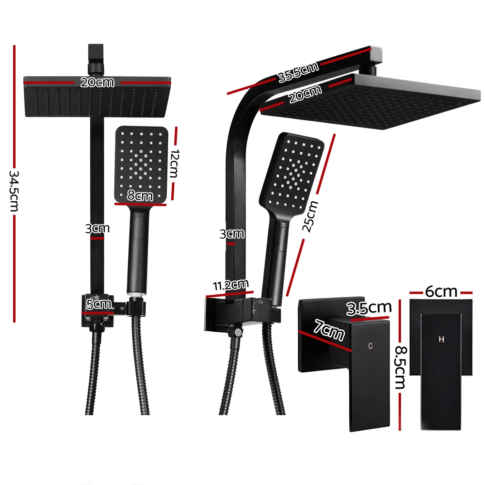 Overhead shower head dimensions: 20cm x 20cm
