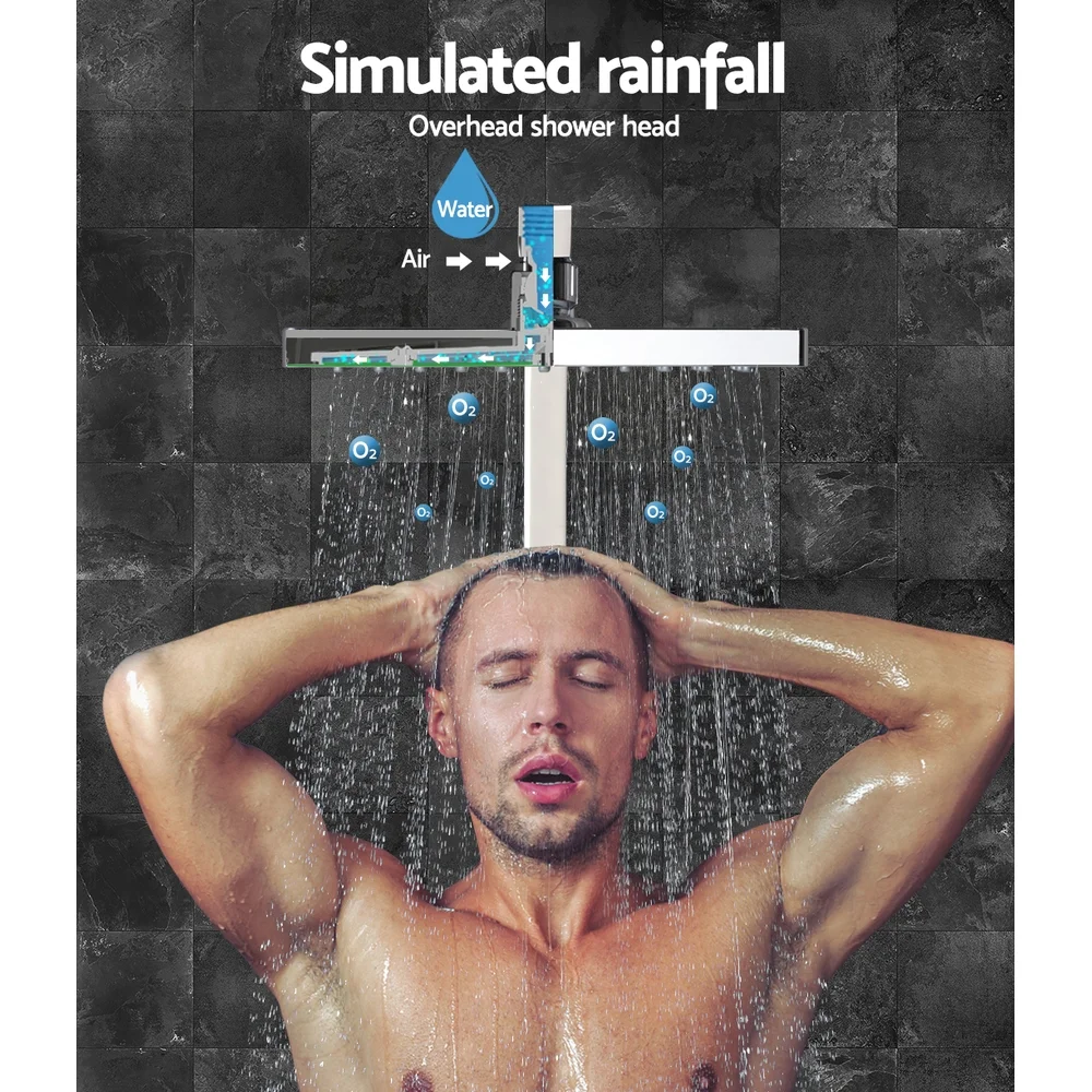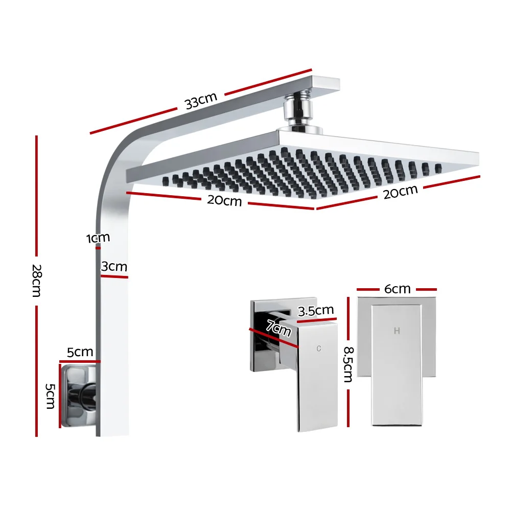 Overhead shower head dimensions: 20cm x 20cm