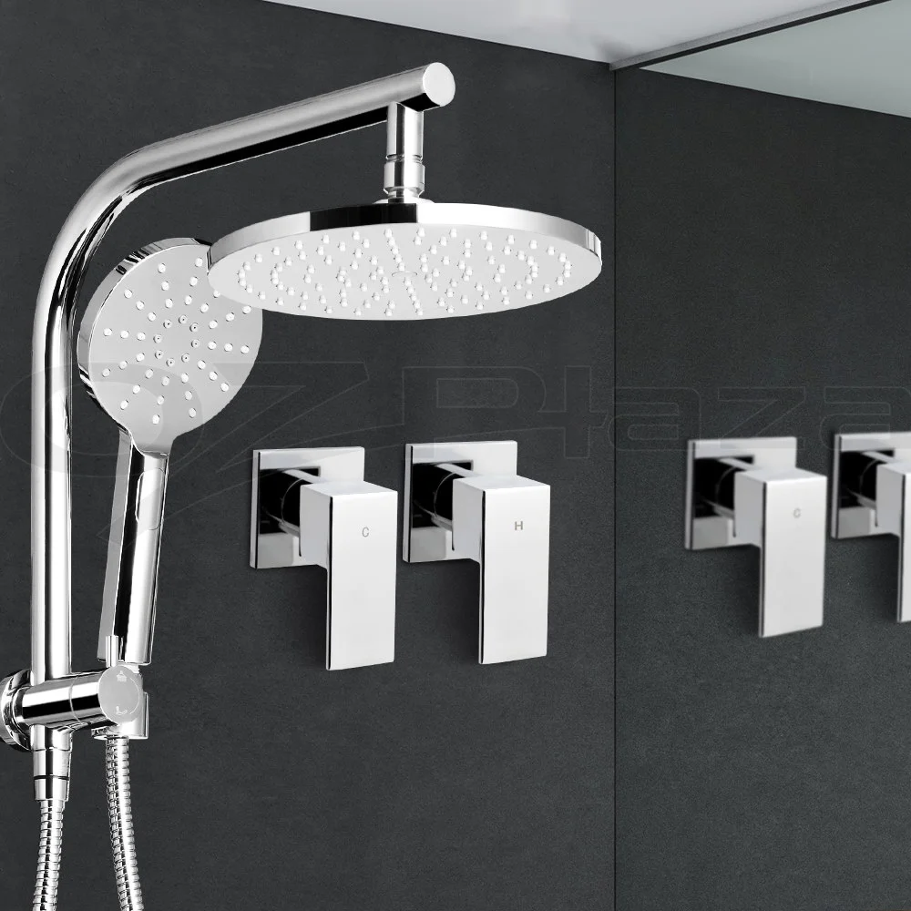 You will get a top quality fixed 9' shower head that simulates rainfall for a very soothing shower plus a handheld shower head with up to three spray patterns to let you target the water at specific areas with varying intensities. Made with a solid brass body and finished in premium chrome, the durable fixed shower head also features a built-in brass diverter to prevent leakage. The handheld shower head has a 1.5m stainless steel water hose to allow flexible use. Also included is a brass shower rack to complete the ensemble. And for a perfect mix of the right water temperature, our shower taps make it easy for you. The solid brass construction make these taps absolutely smooth and durable with a drip-free 35mm ceramic cartridge to prevent leakages. The brilliant chrome finish actually comprises a multi-layer finishing process with zinc, nickel and brass plating. The taps also have hot and cold markings for hassle-free use.